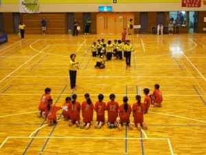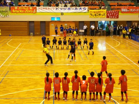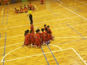 朝からどんよりとした天気の中、体育館に到着。子供達はいつもど おりアップして大会に臨みます!